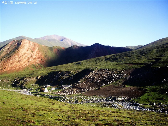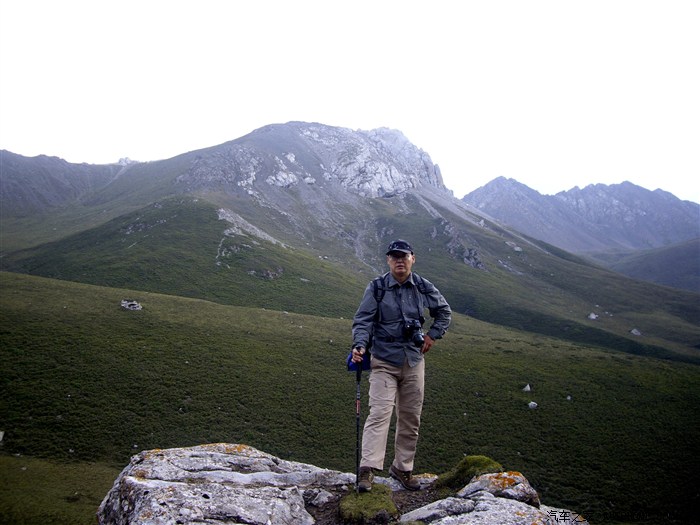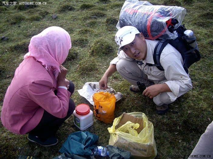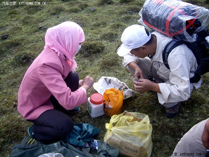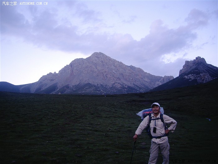 傍晚八点半左右,天色已经暗了下来,我们确不知主峰的所在位置,正好山坡上有一牧人房子,上前询问牧人,我从牧人的眼睛里看出了他们的惊奇,我们确用惊奇目光看着他们房前的皮卡车,朝阳面的车轮胎都用布包裹起来,看来高原的紫外线厉害啊!一牧民起身出了房屋指着坡顶说“这就是马牙主峰”,呵呵……主峰就在头顶。我又问他,你们的车是从那里开过来的,他说是从青海,看着这凹凸的草甸,再看看皮卡车,嗯,只有它才能走这种地形。