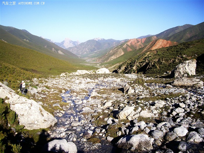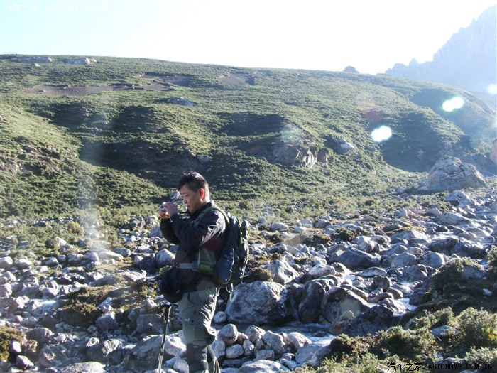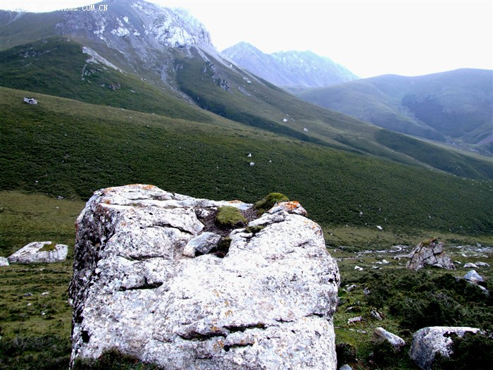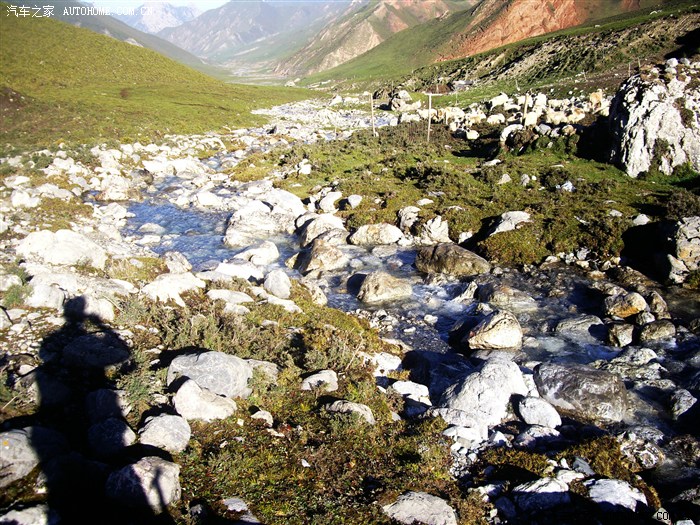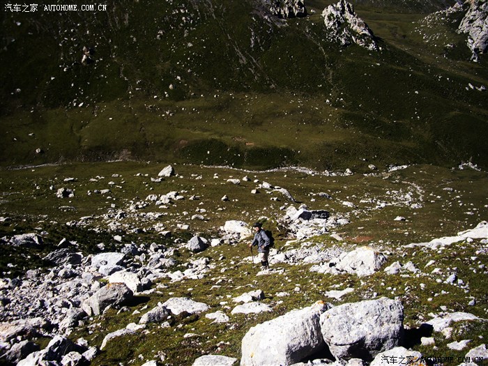 起伏不平的草甸上布满高低错落的石块,我们在谷底溪边来回穿插着,行走着。。。。。