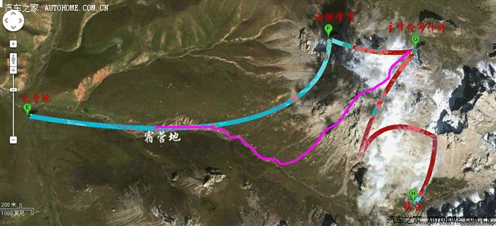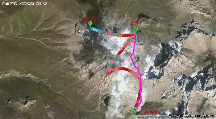看到下图的登山路线和下山路线,可能大家就已知道我们登山的艰难和下山时的惊险。