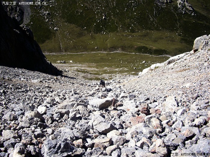 草甸之后都是风化的碎石坡,坡度六、七十度。我被甩着更远了。