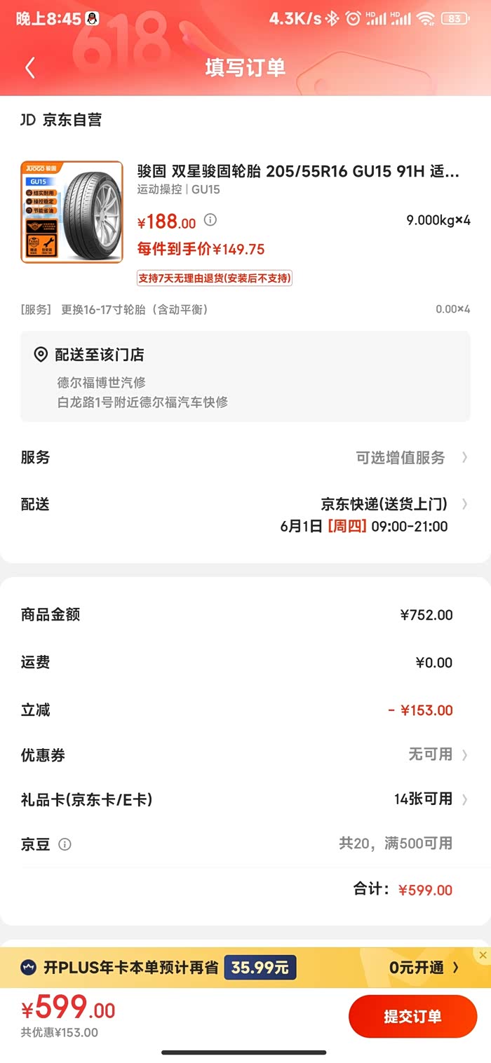 我看618搞活动599四条包安装 不知道质量怎么样