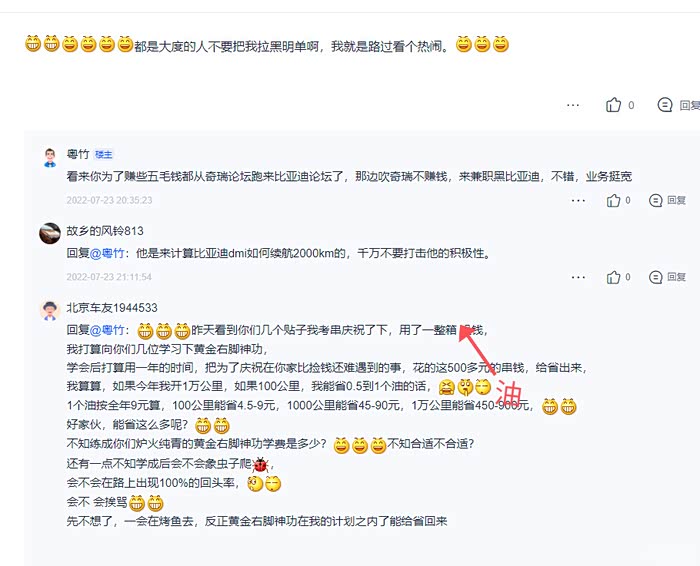 要不我在给你们算一下宋论坛粤猪断章取义百公里15个油一箱油能跑个1300公里的数据,