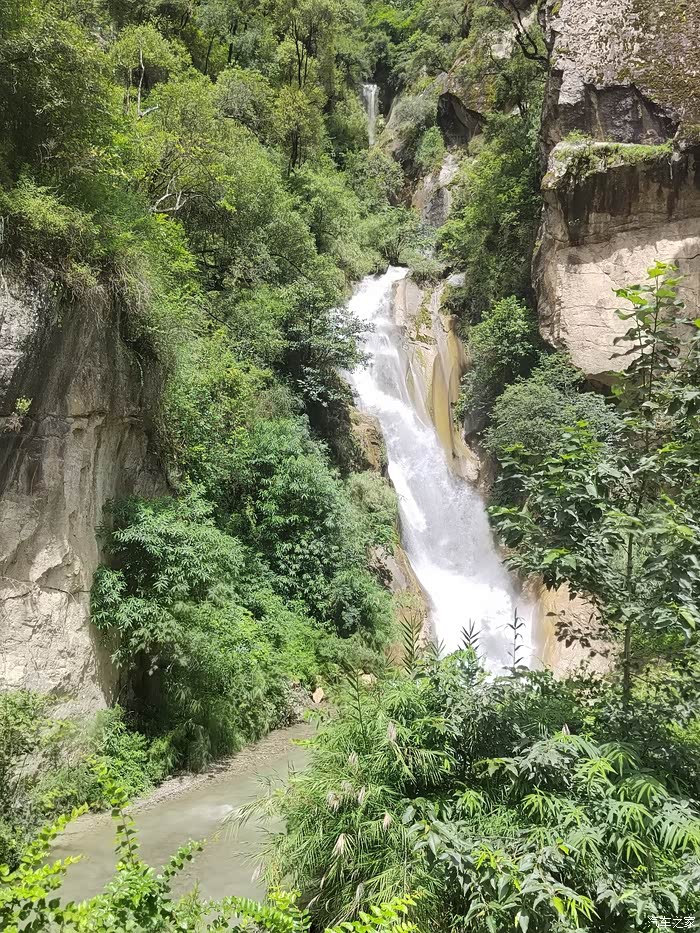 这一路高山经常见到挂着的“白练”——雪水瀑布,这是我用手脚试探过的——瀑布冰凉!