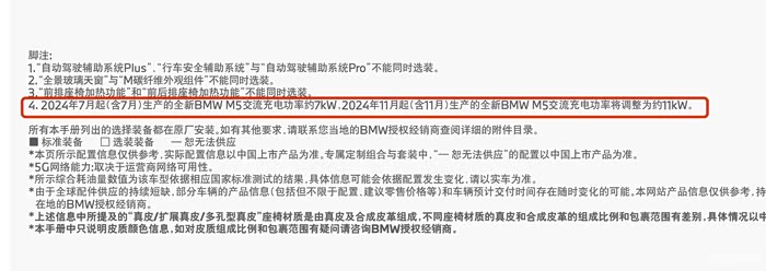 官方手册里小字标注了11月起的G90 M5新能源充电功率从7kW改为11kW