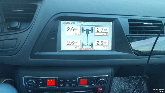 胎压检测,貌似数值有点高,这是开了一段距离以后了,轮胎发热有点高应该也是正常的