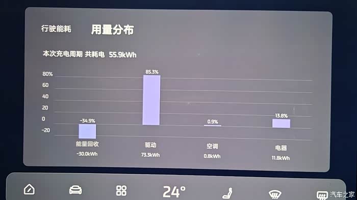 而今年充100%,极限能跑450,90%大多数时候能跑350,图里面是我最近一次充90%跑的,跑了290公里,剩余只有70公里,也就是实际只能跑350左右,而电耗方面,跑290公里耗电55度,剩余15%,也就是说56度电占75%,那总电量就是56/0.75=75度电左右,加上藏电和部分不能使用的电量,应该在80-85度电这个区间,跑了5.7万公里,粗略估计电池衰减大约5%左右,这个衰减不知大家能不能接受