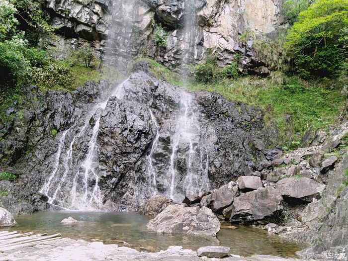 其气势和声势更是可想而知,是观赏瀑布的最好时机。瀑布水注入潭内,溢出的水顺山间沟壑往山下流,不断冲积着岩石,一直流到村中的一条小溪内和