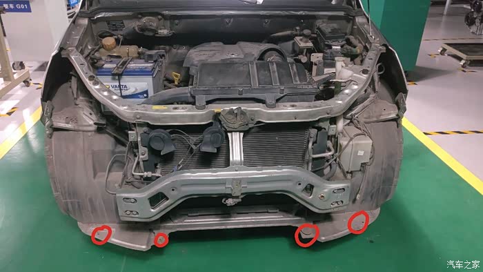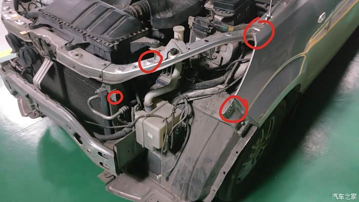 首先,拆保险杠,先拆中网-4颗六角螺栓、两颗螺丝,再拆杠-车下面有两颗六角螺栓和两颗塑料膨胀螺栓。与翼子板处有螺栓。机仓里有两颗,灯下面还有一颗,想不起了,装的时候再发图吧。