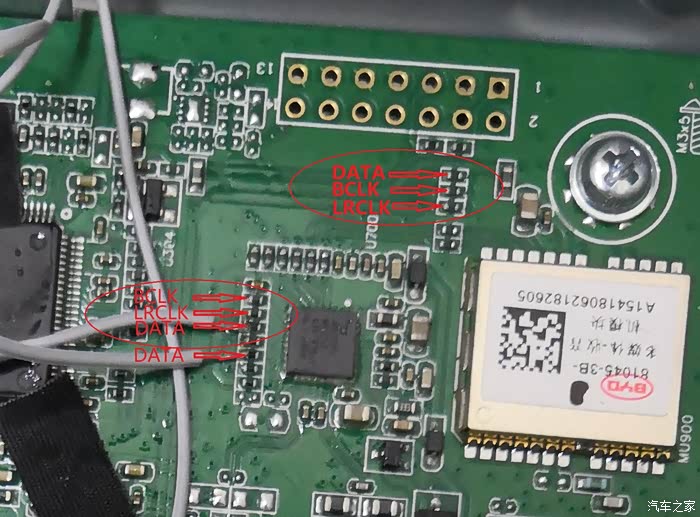 改数字输出一般要拆机看芯片是否支持,这种改法比较高端,至少90%以上的改装店都不会的,支持原车控制音量。缺点这种改装必须拆车机,在CODEC或者集成CODEC的SOC差资料看看有没有I2S输出或者SPDIF输出,一般低端车型没有的,比亚迪除外。有独立DAC都有I2S信号,直接引线接I2S转SPDIF转换板数字信号直接到DSP,车机操作没有影响,优点当然音质损耗最小声音最好。让我们过一下流程,车机CODEC芯片I2S输出或SPDIF输出->DSP调音处理->DAC转换->运放放大->功率放大->接喇叭出声,这是最完美方案,当然要有人懂怎样接,这不是一般会用万用表能玩的,还要懂得使用示波器。