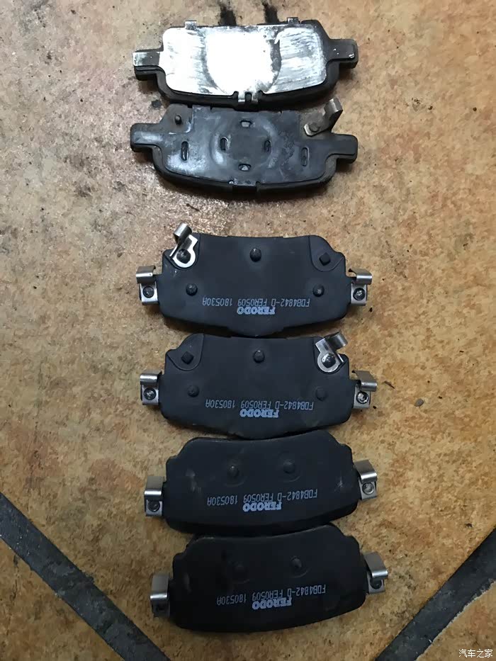 上面是车上拆下来的,下面的是不适配的刹车片,还好能退。后刹车片和新天籁通用,汽修店里买了两对。