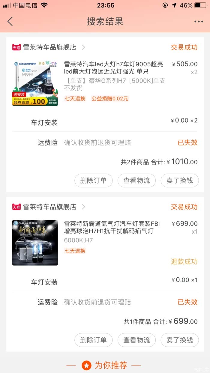 远近光都换了,两年时间,用过LED,用过氙气,雪莱特旗舰店截图。汽车大灯常见的也就飞利浦,欧司朗。雪莱特应该算国产里面比较好的品牌了,效果好,价格也直逼进口品牌。(注意一个问题,网上买是这个价,放在美容店里改装至少+500)