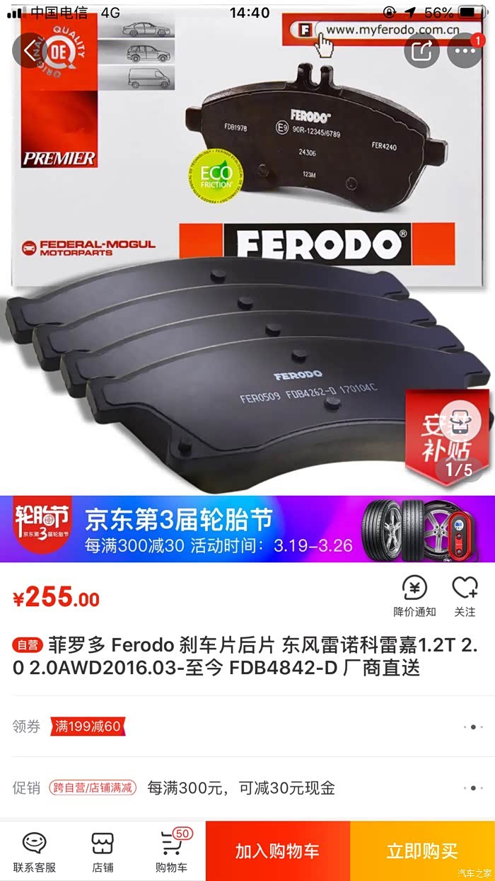 本以为科雷嘉的后刹车片能用,结果不行。天猫的菲罗多旗舰店客服是说查询到这个型号能用的