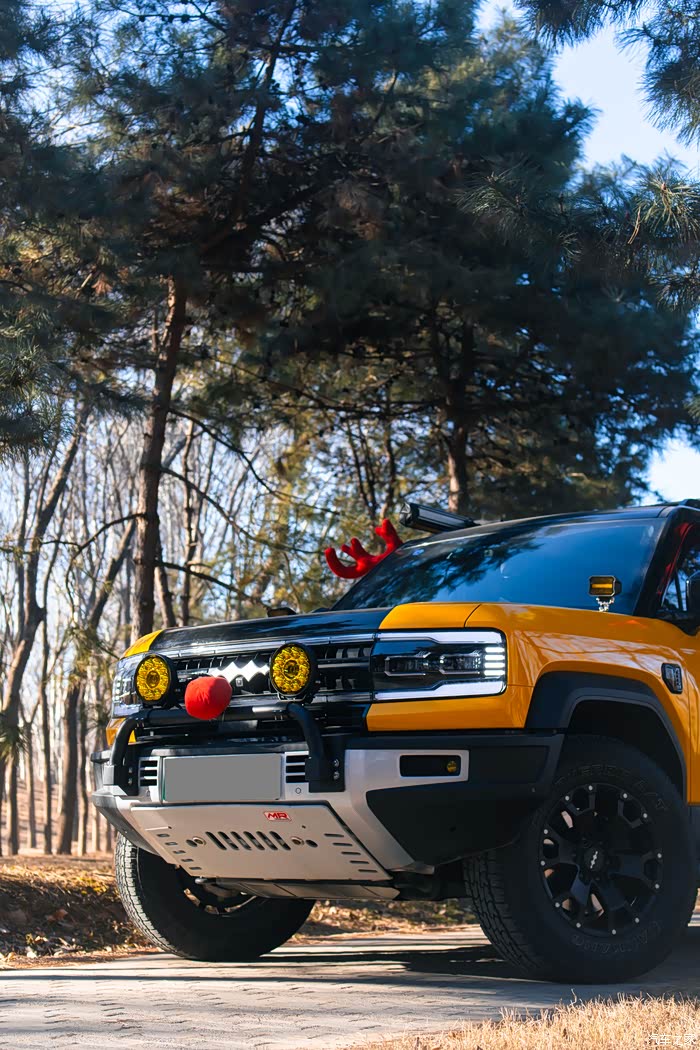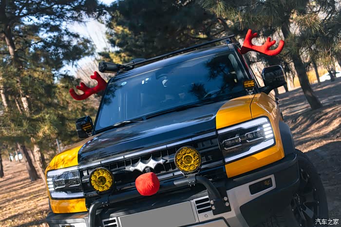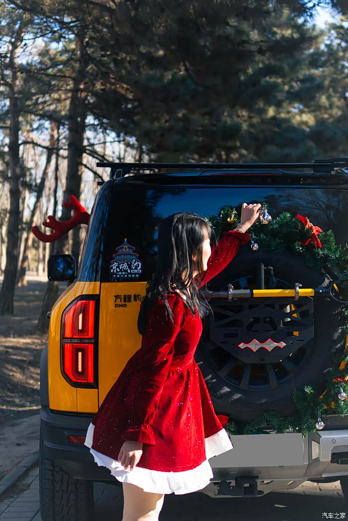 车身两侧装扮了可爱的驯鹿鹿角,后备胎也缠上了绿色的松针和圣诞节装饰,让它瞬间充满了节日的氛围。开着这样一辆“圣诞专车”行驶在路上,回头率超高,仿佛我和豹 5 也成为了圣诞节的一道独特风景,给这个寒冷的冬日增添了不少温暖和欢乐。