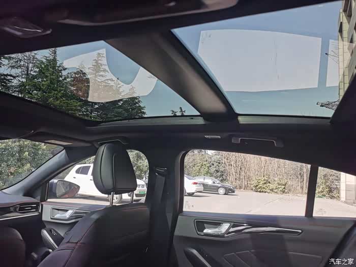 大天窗能同时照顾到前排和后排,车里的采光没有死角,坐在车里不会有压抑感。