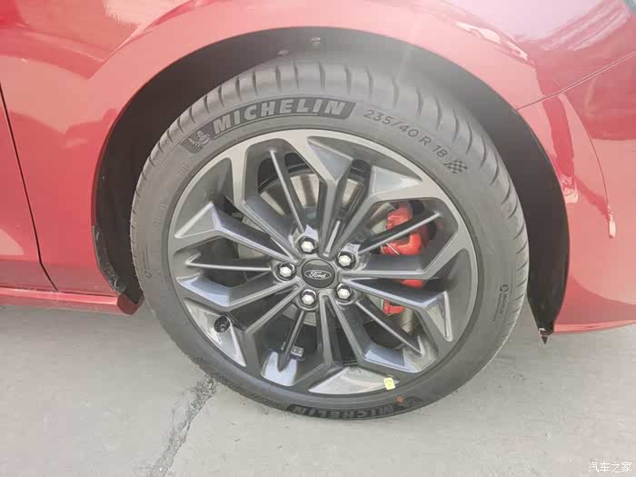 翼子板上专有的ST-Line铭牌和18英寸枪灰色轮毂外加红色刹车卡钳,都能很好地表明它小钢炮的身份,而且原车轮胎用的还是抓地力超强的米胖子轮胎,这个成本可不低,好多赛车都是用的同款,必须给个赞。