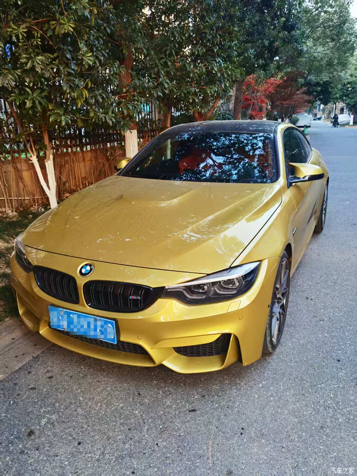 我有啊。从海外带回,女生自用车,2019年款宝马M4 Coupe 双门硬顶跑车,2.1万公里,奥斯汀黄金属漆,北京牌。