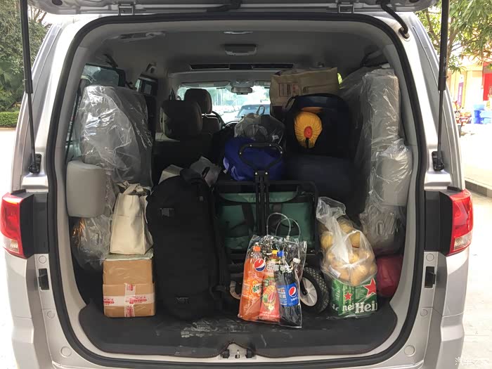 你这把后备箱利用的可以啊,拉了不少东西哦