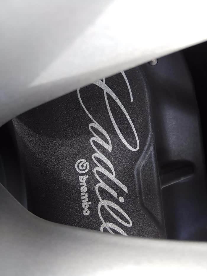 刹车两个前分泵用的是布雷博定制的四活塞分泵,这点上在同级别里算是非常厚道的。后刹车用的是普通的。