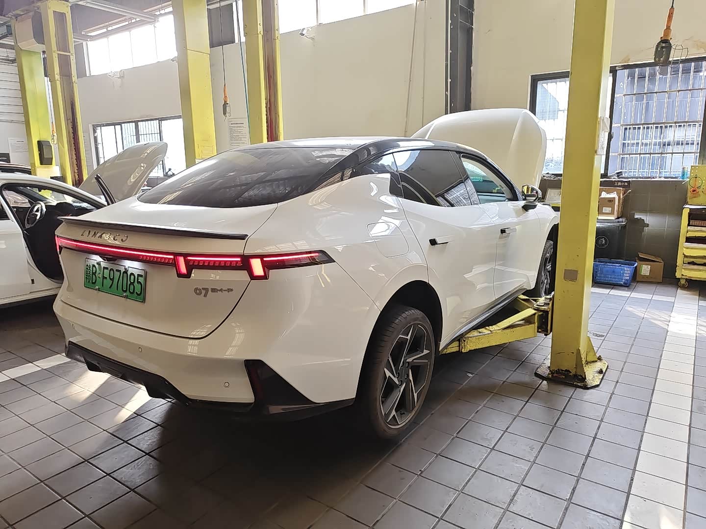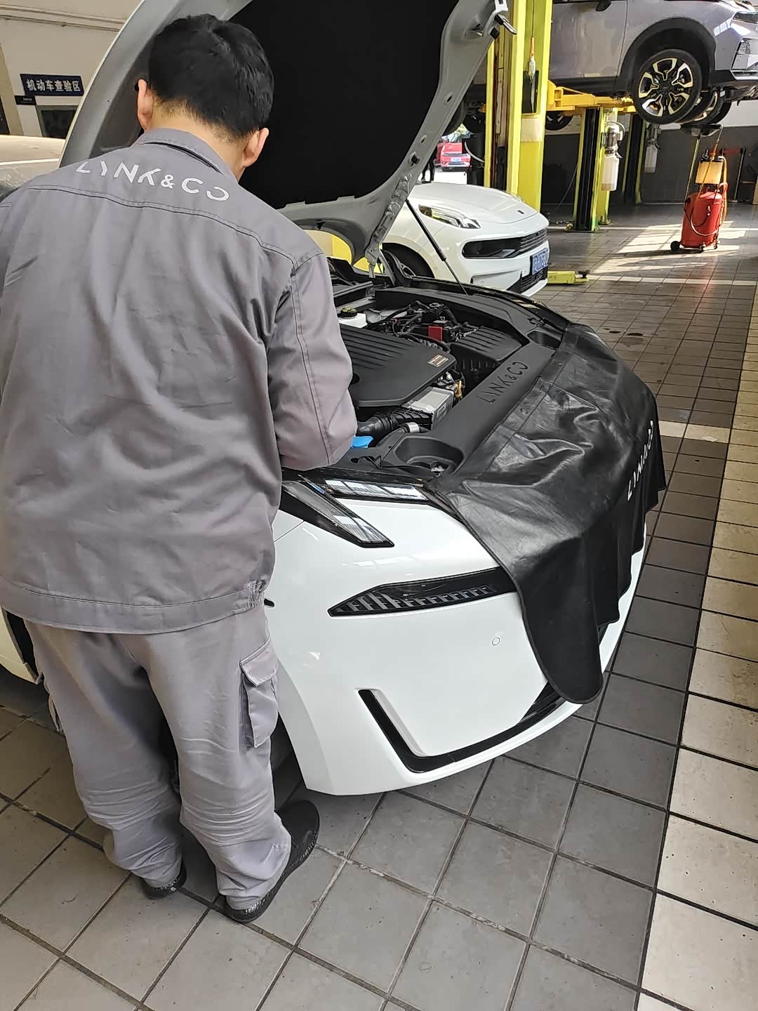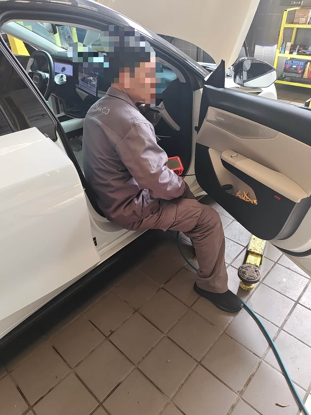 这一步也就是咱们保养必做的这个07每到15000km就要做的整车保养检查,主要也就是师傅用电脑连接咱们的车机接口进行一个保养里程重置,顺便看一眼车辆有没有什么特殊状况,当然,我也看了一眼自己的。电池健康度感觉还可以也就掉了3%不到