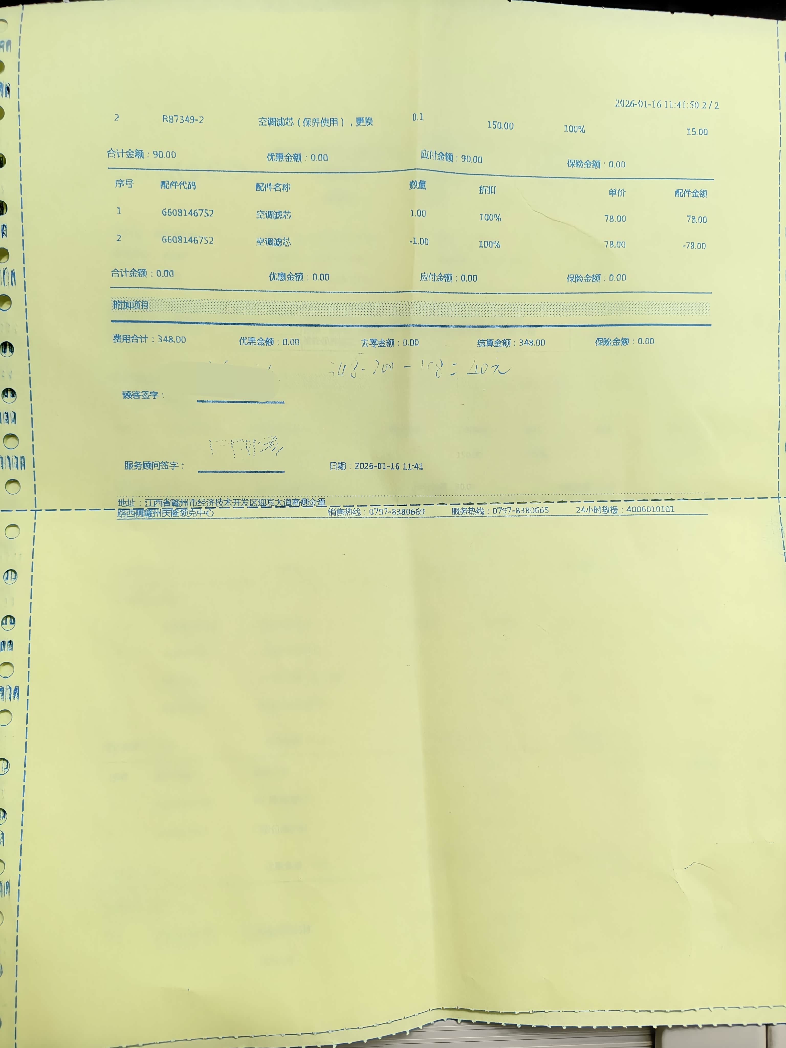 空调滤芯108元,动平衡150元,车辆三电检查90元,合计348元