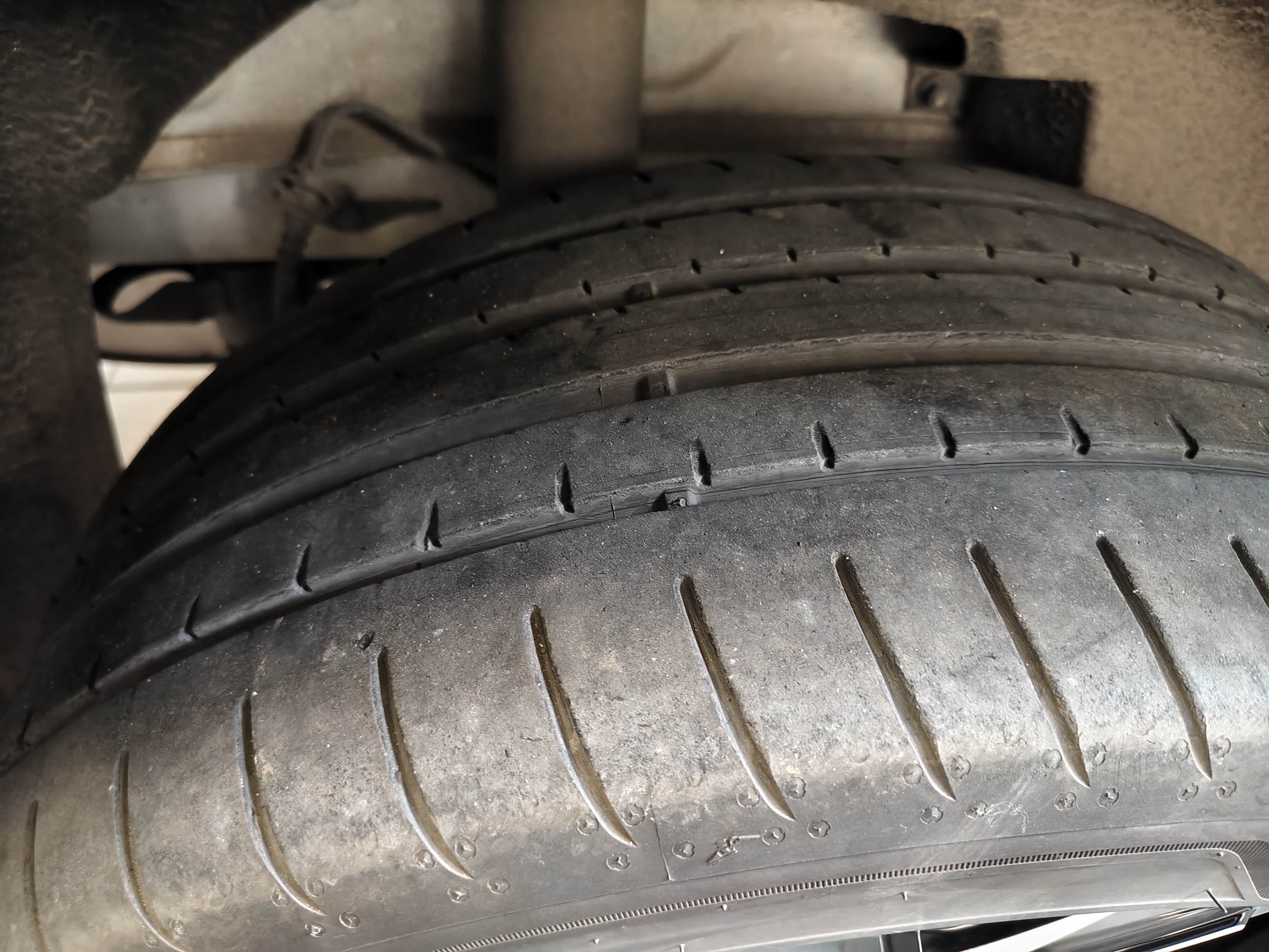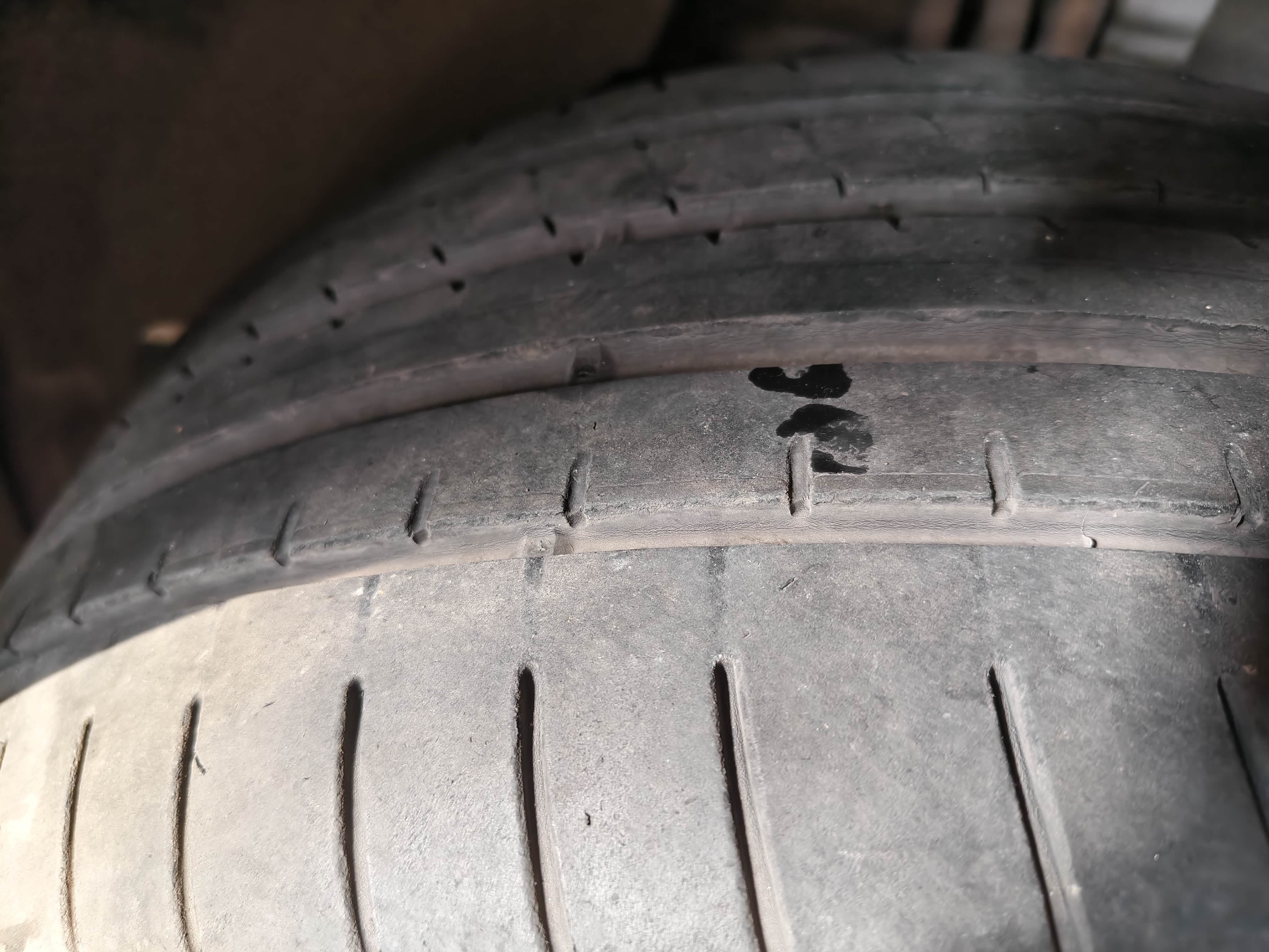 从上面的图片可以看到,这两个前胎磨损还是相对来讲比较严重的,如果继续放在前面我感觉5万km就得换胎了,这次把他们换到后面去。到时候就可以四个轮胎一起换掉也不会那么麻烦。