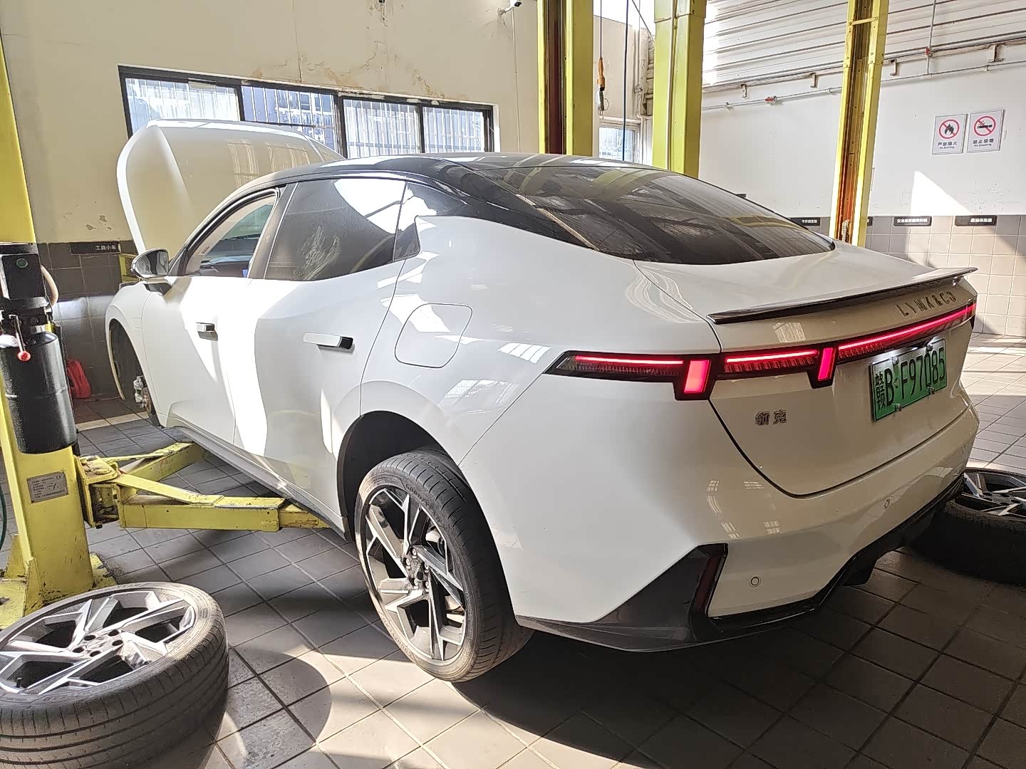四个轮胎更换好打紧螺丝以后,还给我四个轮胎补了一下气,该说不说这种混动车胎压还是高一点开着更舒服。