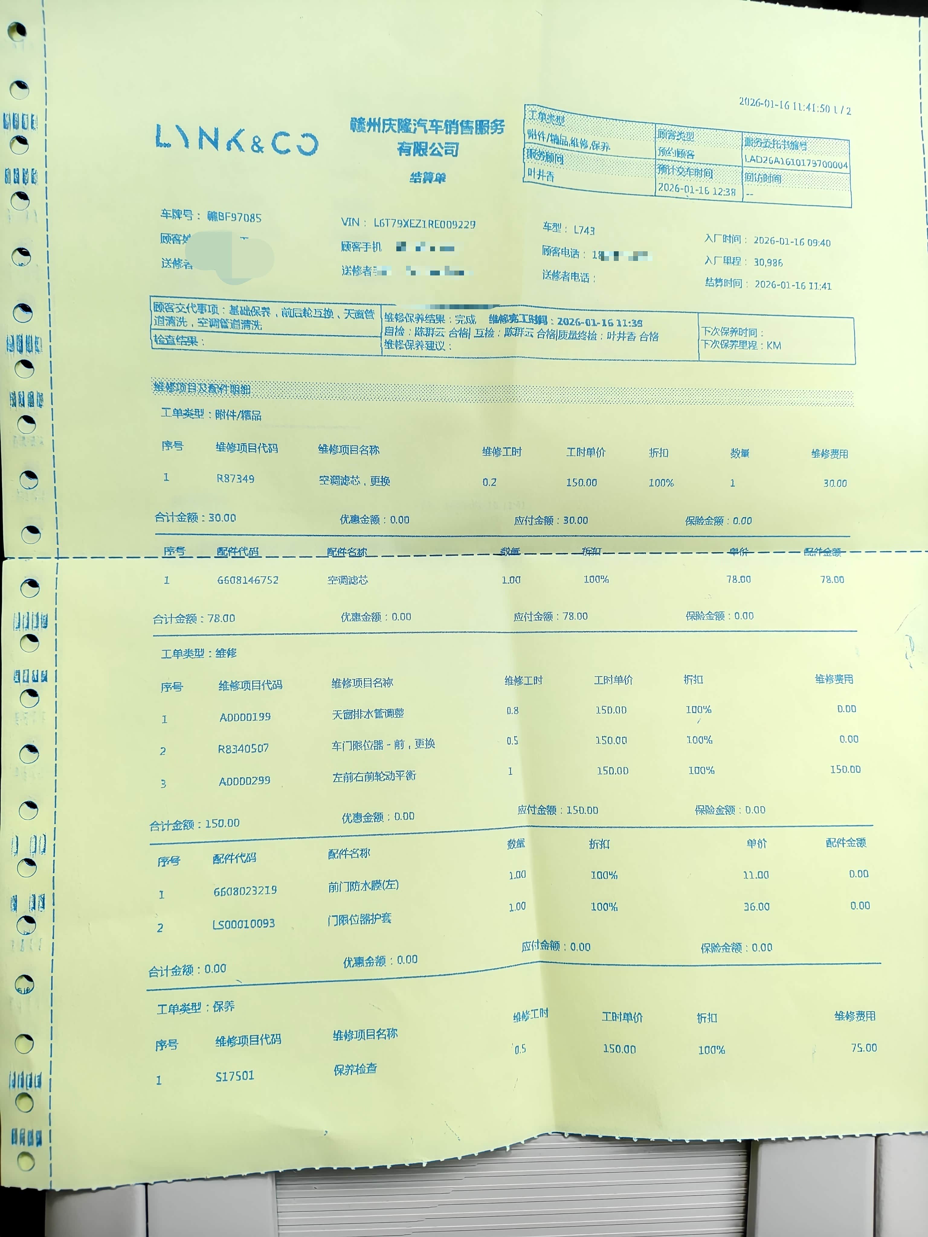 总的来说,这次保养花费的时间也在我的预期之中,中午还蹭了顿饭,整体来说体验还是挺好的,价格方面就是这个动平衡的收费感觉贵了点,外面应该便宜的多