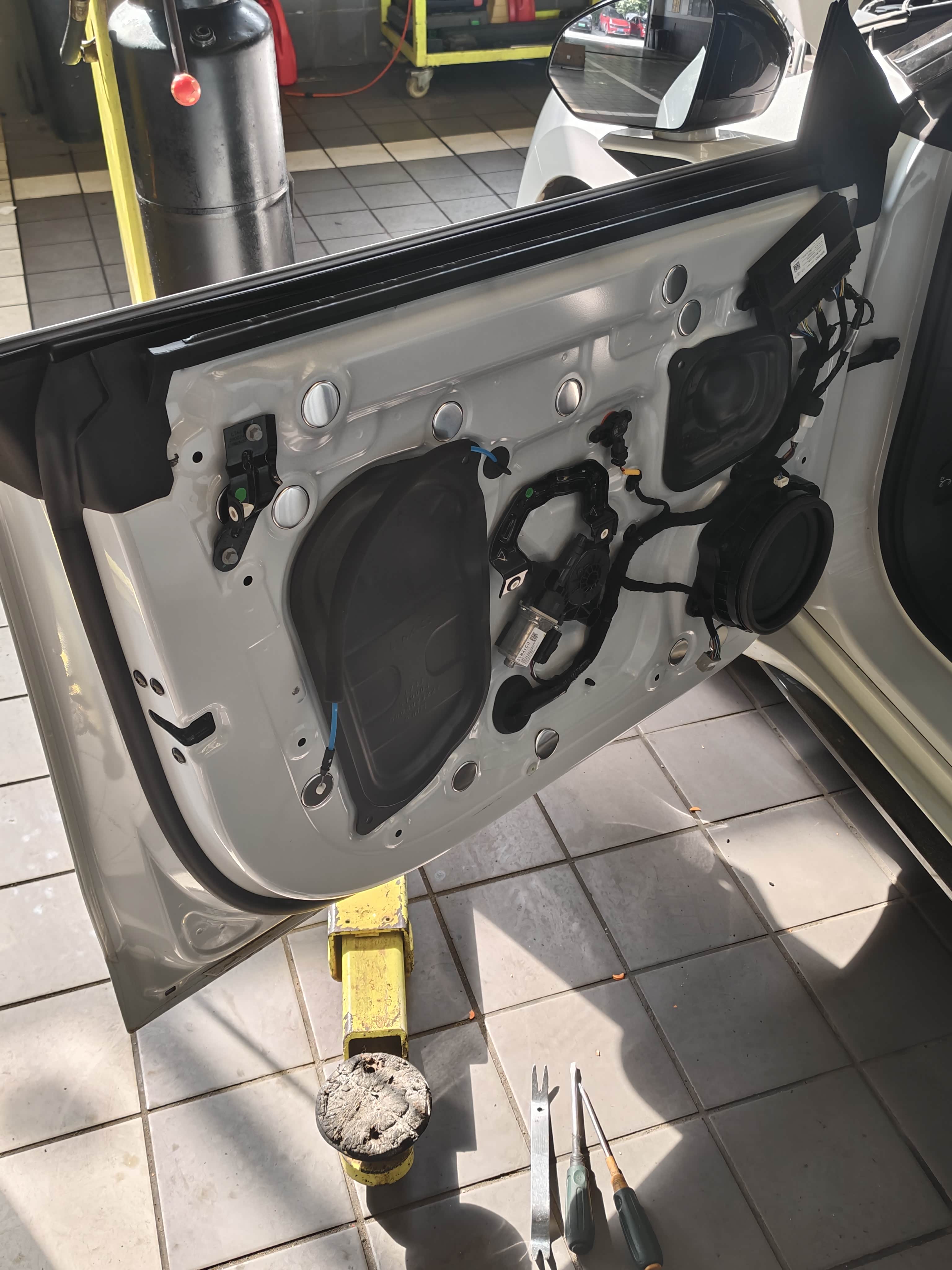 这次也是来售后这里更换了一下这个门板的限位器,原因在于当时原厂这个限位器跟玻璃不是很适配容易刮伤车玻璃,所以后面厂家也是。针对所有车主免费有这个更换车门限位器的政策所以也顺便让售后帮我搞了一下,这个速度还是蛮快的,而且也没花钱