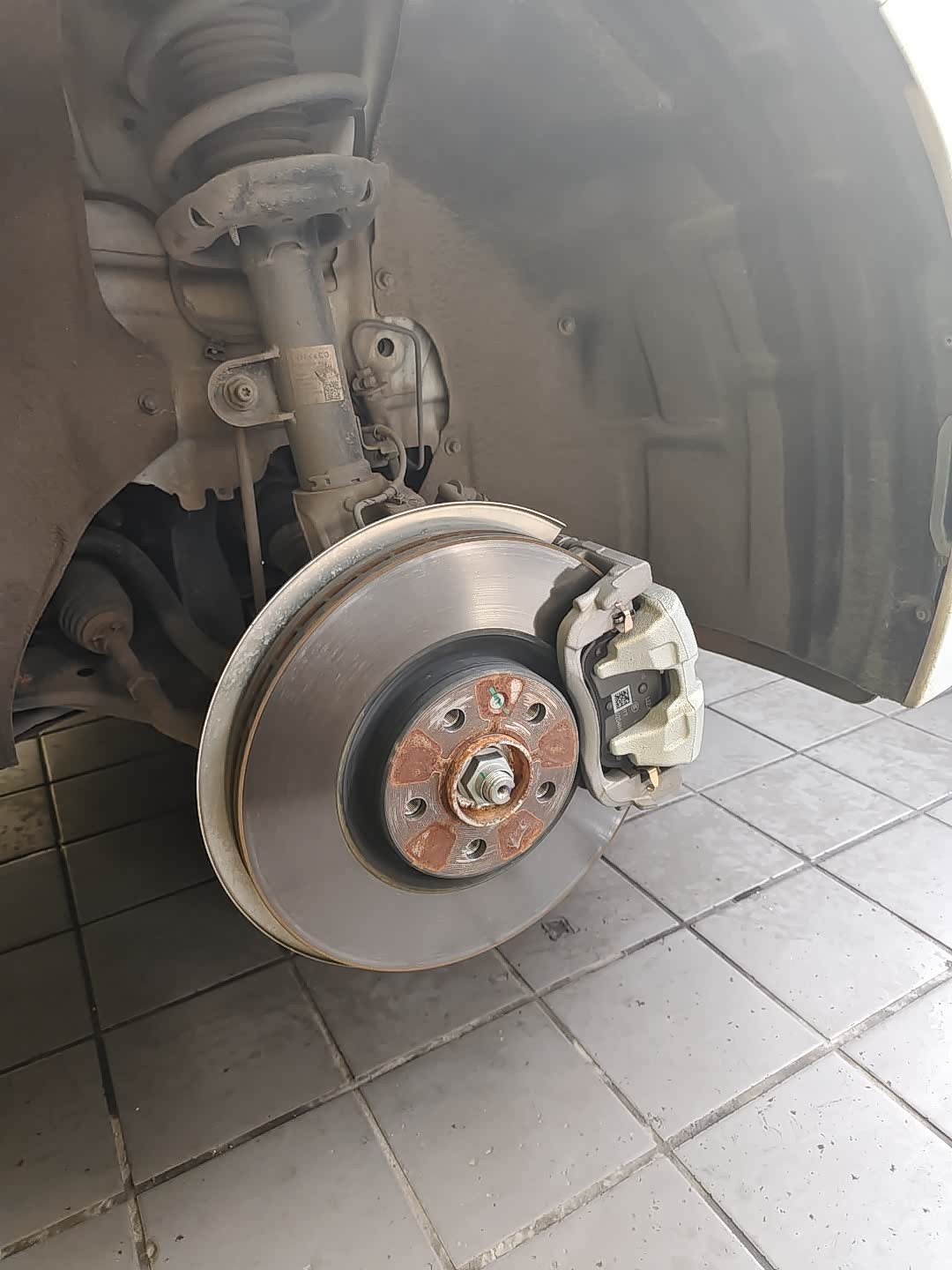 这一步想必大部分车友都会看一眼,毕竟咱们零七毕竟是一个混动车底盘,相比较纯油车来说还是不算高的,我之前也是刮过一次底盘。这次升起来看了一眼,整个底盘状况还是比较好的就那一点点划痕。