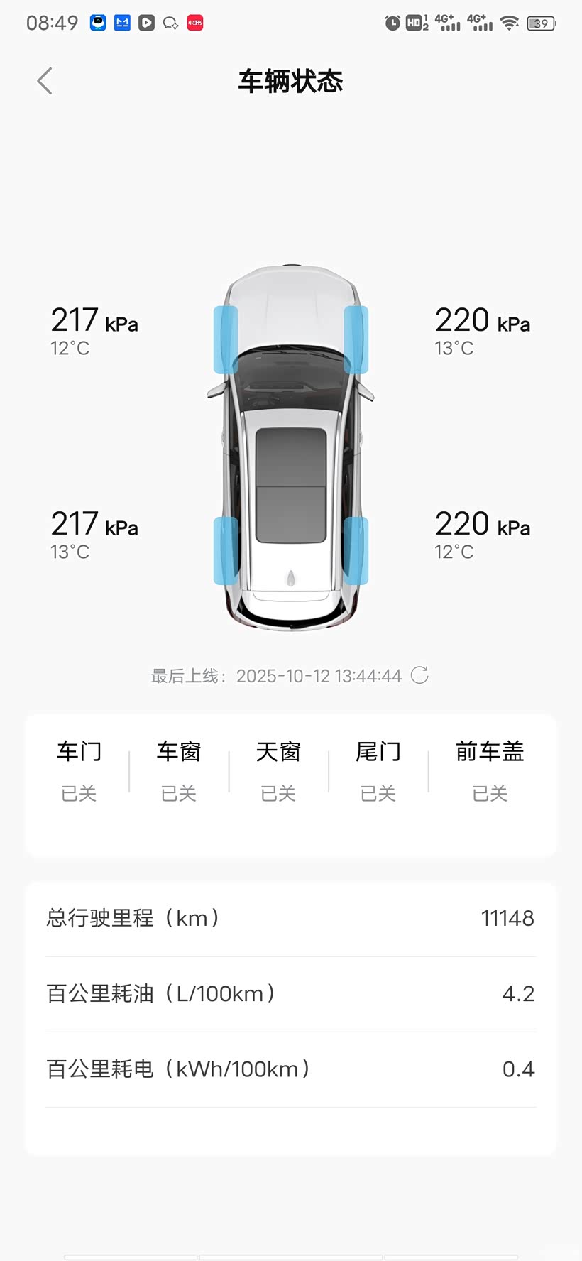 最惊喜的是,就算车辆显示离线,只要有网络信号,APP发指令照样管用。我之前试过在办公室提前二十分钟开空调,下班走到停车场,车里已经是预设的舒服温度了,这种“未上车先享舒适”的感觉,真的太爽了。APP上还能实时看到车辆的电量、油量、总里程,车子啥状态一目了然,规划出行也更放心。