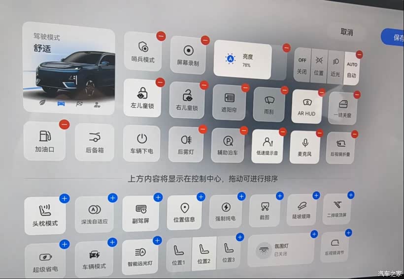 之前确定入手深蓝S09的时候也在网上做了不少攻略,看到很多人都在吐槽深蓝的车机容易硬塞广告,但我这车到现在还没出现过广告的情况,不晓得是不是大家的刻板印象导致。然后这车的车机虽说集成了大量的功能,但布局很人性化,功能图标都能根据自己的习惯自由拖拽。说句大实话,我到现在都还不太喜欢这种缺少实体按键的设计,起码把空调之类的常用按键单拎出来一排也是好的,可现在就是这么个流行趋势,没招。这车的语音交互可以说相当智能,指令随叫随到,就是单独一个人开车时说指令我总觉得有点怪怪的。HUD这个设计我还是比较喜欢的,主要S09的HUD尺寸较大,没记错应该有43英寸吧,开车时候看行车信息也很方便,用习惯了其实比仪表盘更得劲。