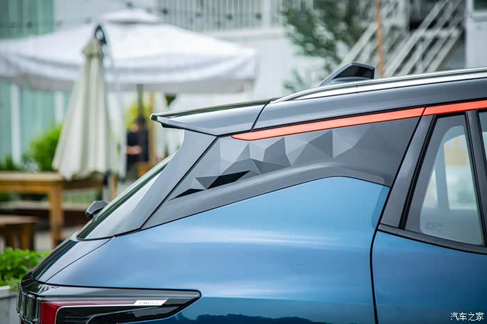 尾灯的造型和其他领克车型略有不同,刹车灯使用了一个回旋镖式的设计。