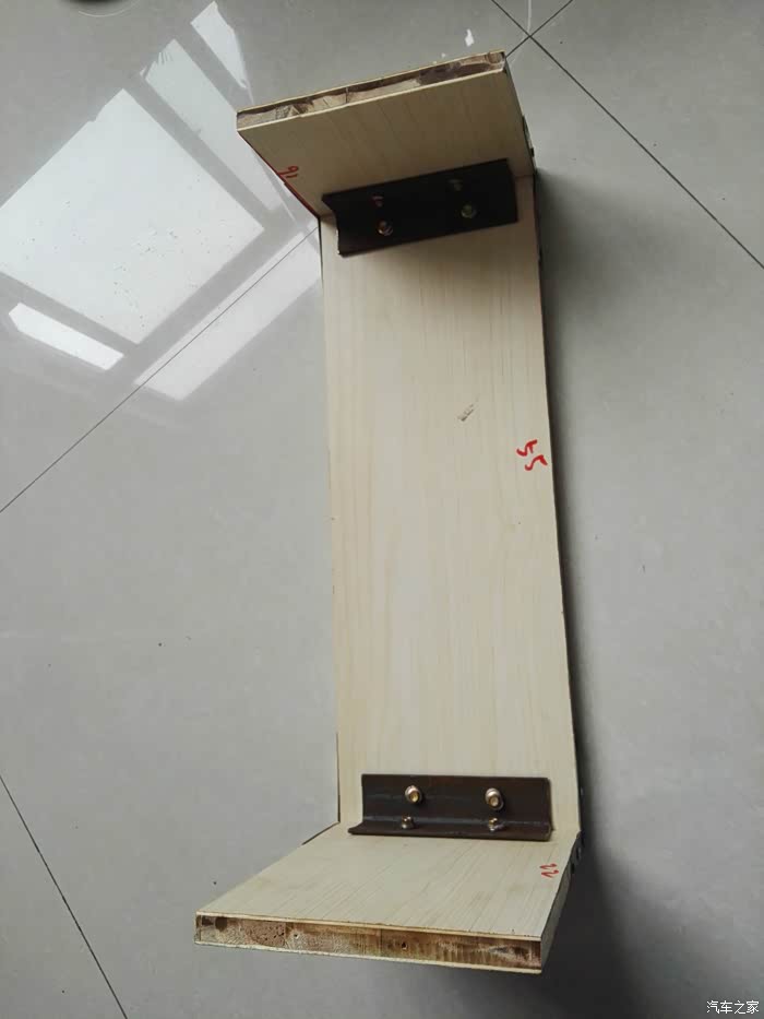 首先是尺寸,经过我的反复测量,初步决定裁剪以下尺寸:主板 19X55,前板 19X22,后板 19X16,靠背 65X10,以上单位都是厘米。另外需要三角铁2块,合页1个,螺丝若干,需要燕尾丝8个,因为需要穿透三角铁。还有其他的小固定件,不知啥名字,都在单位找的,大家做的时候,可以找别的材料代替。