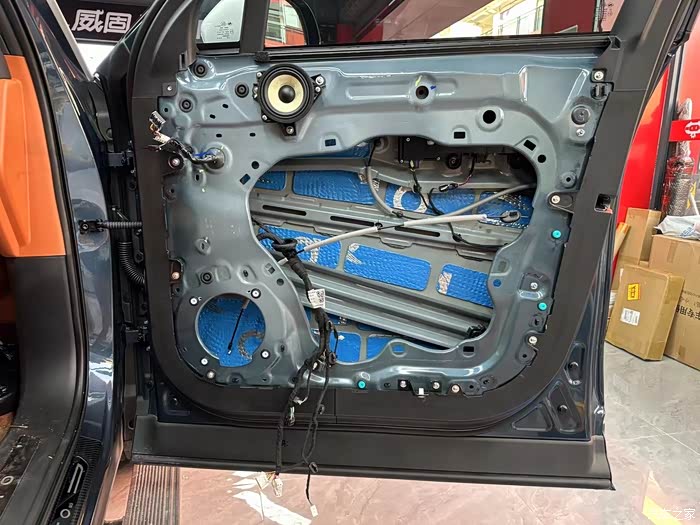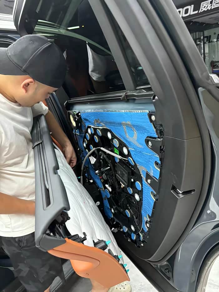 实在忍不了,周末直接杀到店里,跟师傅说:“给我把四门隔音还有引擎盖隔音棉都安排上,今天必须给我解决这噪音问题!”师傅也是个痛快人,麻溜地就开始干活。拆车门的时候,我看着那空荡荡的车门内部,心里直犯嘀咕:就这,能有好隔音才怪了。