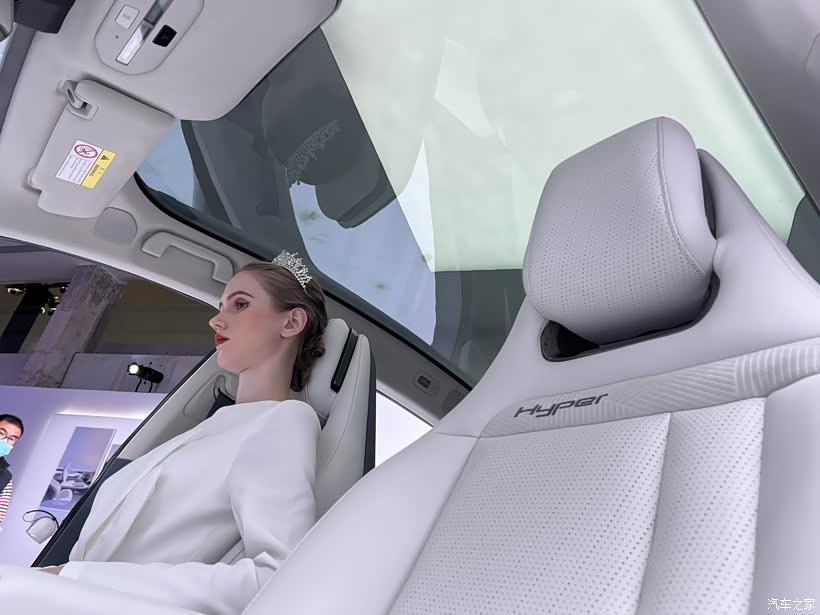 还有就是中控台的设计,会考虑到很多的用车场景,比如说驾驶者的场景,就是专注还是,手不离方向盘,视野要好,所以用力扁平的仪表,显示关键的信息即可。副驾当然是我家女神的位置,同样的考虑副驾的用车场景,半躺的休息状态,化妆的桌板需求,这些都在这台Hyper GT的内饰有所体现。