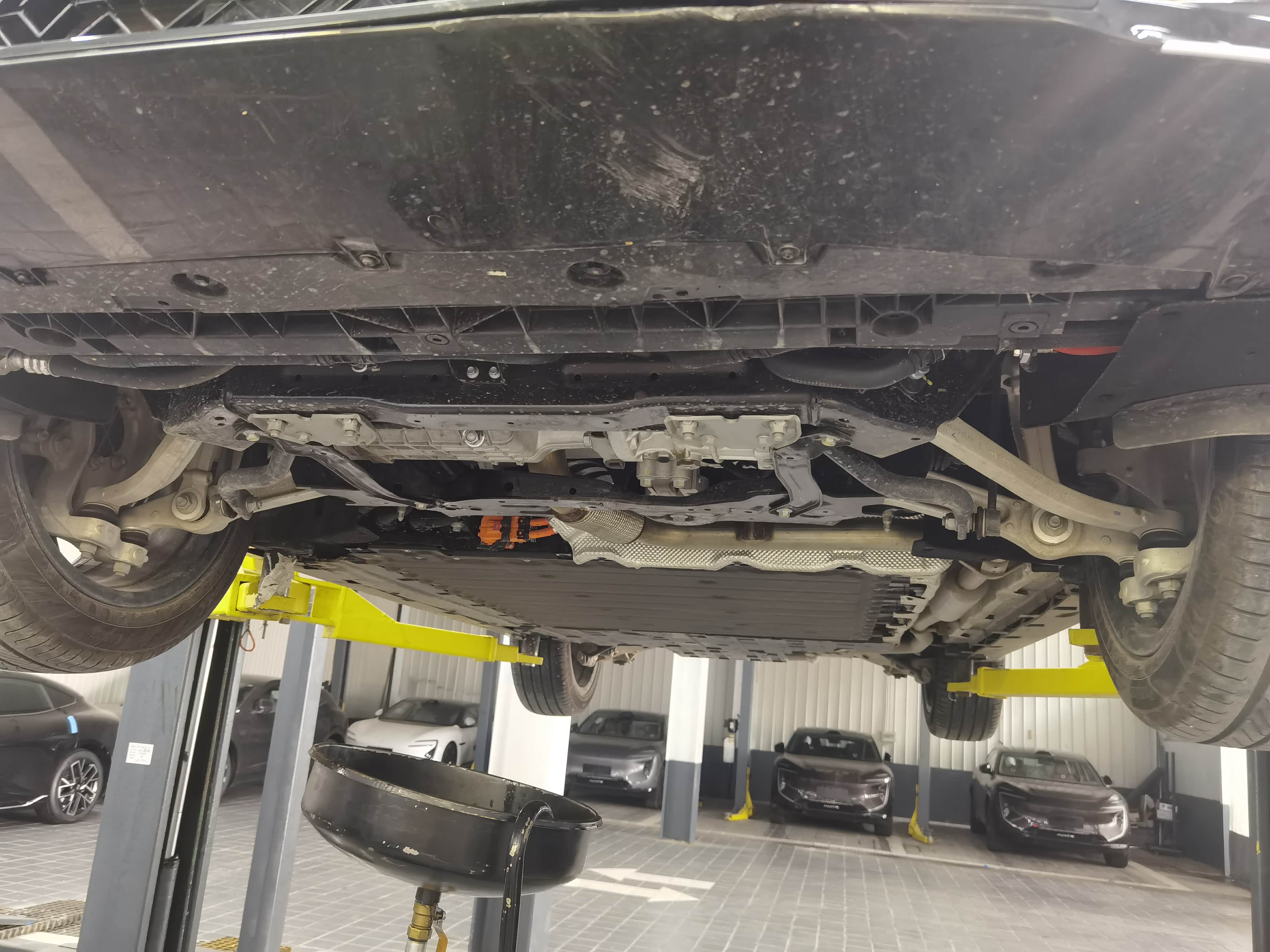 接着是三电保养,主要是给电机、电控和电池做全面检查。师傅把车开上检测台后,连着电脑测了好一阵数据,还扒开底盘护板看了电池组的接口,说目前电池衰减在正常范围里,让我接着放心跑。这部分的花费是270块工时费,本来还有个146块的空调滤芯要换,加45块工时费,算下来该是461块。但店里暂时没滤芯现货,师傅索性仔细清洗了旧滤芯,还特意跟我说明天到货后存着,下次来直接免工时费换,倒也挺实在。