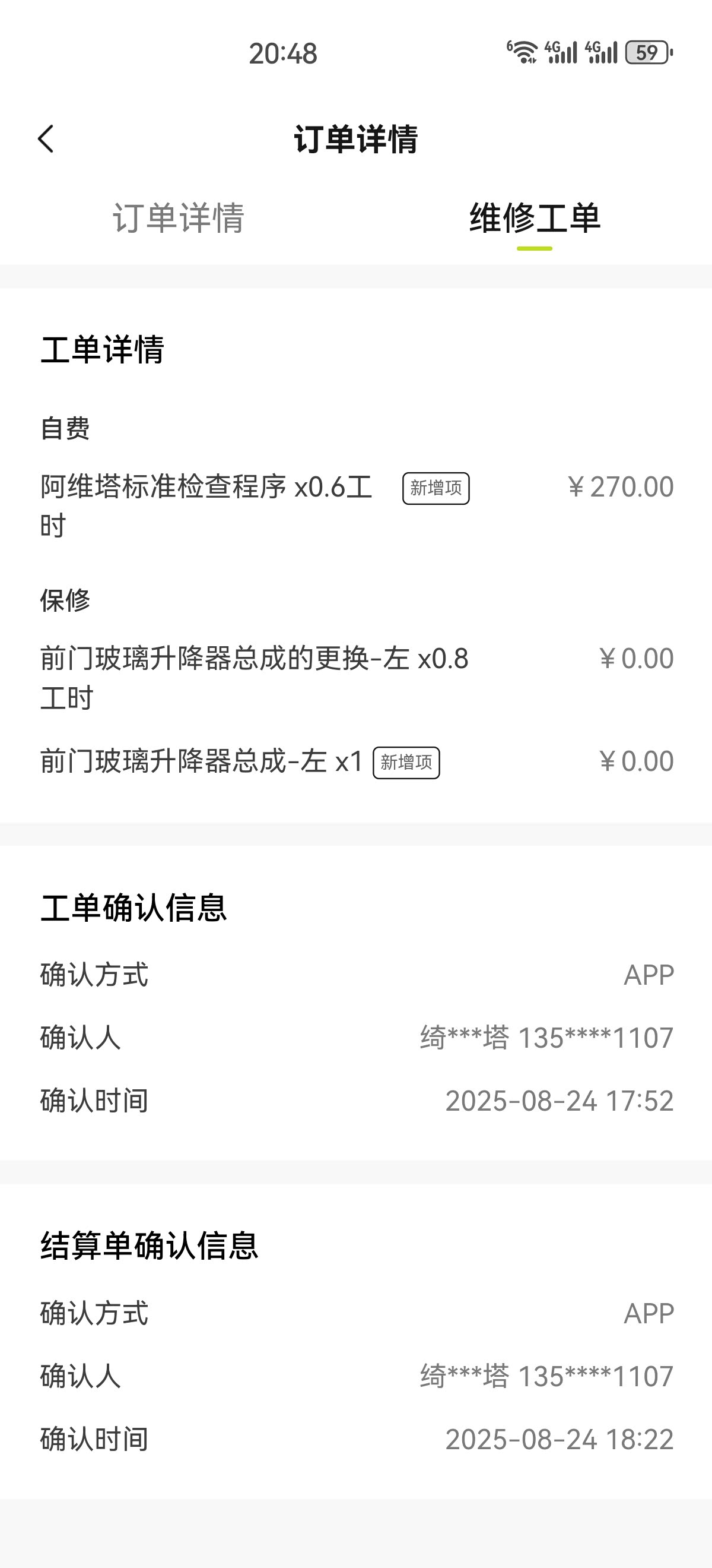 除了这两项核心保养,店里还主动做了不少免费项目:给四个轮胎校准了胎压,趴在车底查了底盘有没有磕碰痕迹,连车门边的小刮蹭都帮我标出来了,内饰也简单检查了按键功能。
