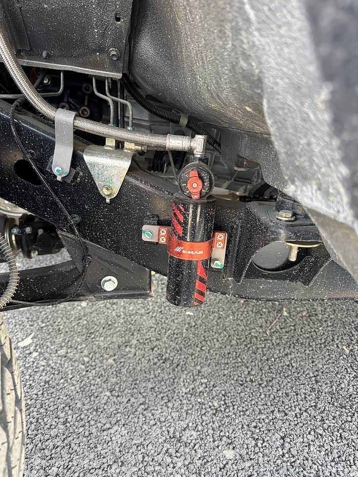 我装氮气减震的时候比较早,当时还没有科曼的212量产氮减,只有捷赛氮减震。这款氮减和原车减震相比,增加了悬架行程,舒适性增加了一些。悬架行程增加是我用千斤顶换轮胎的时候发现的,当时原车千斤顶已经无法顶起车身了,于是网购了加长款千斤顶。舒适性不用多说,这只能靠自己感受。换完氮气减震的212狙击手过减速带的时候明显感觉更软了一些。