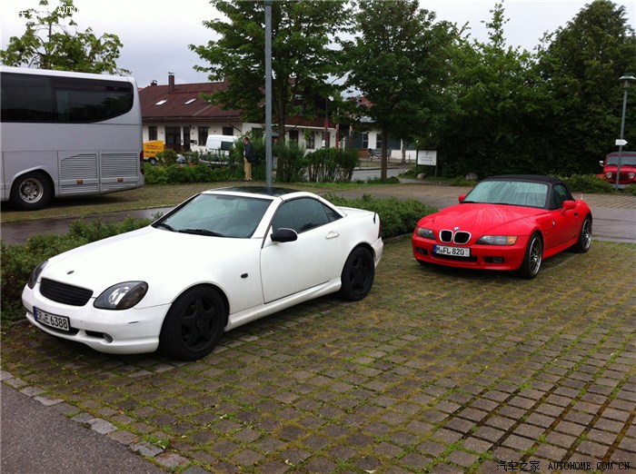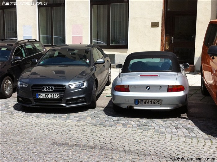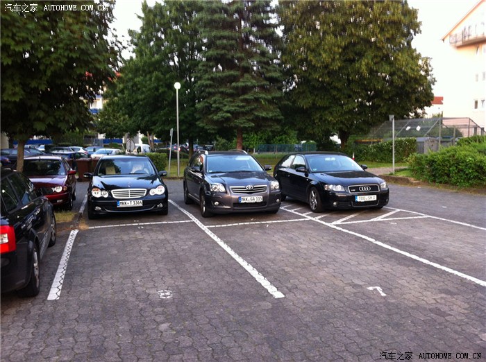 老A6的旅行版,德国有很多A6的轮毂很丑,左边是老款的E级coupe,后面是一辆A4 B6