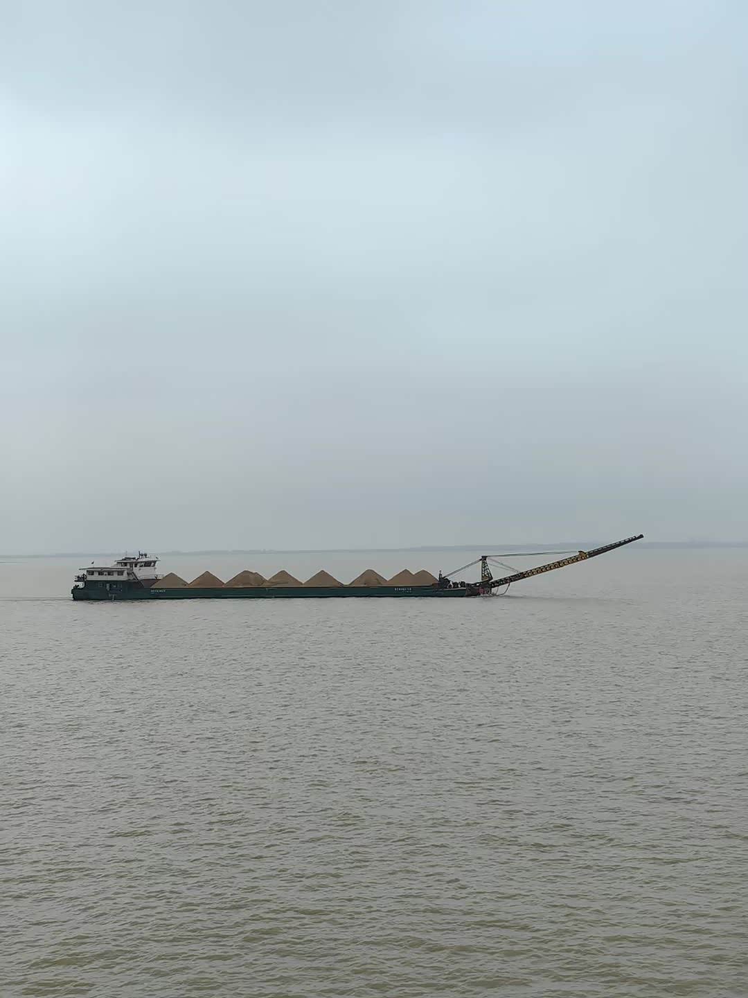湖面不像平日那般平静,微风拂过,掀起层层叠叠的涟漪,阳光洒在水面上,碎金般的光点随波荡漾,晃得人眼生疼。而就在这片浩渺之中,几艘沙船正缓缓移动,像落在锦缎上的墨点,为这幅灵动的画卷添了几分厚重的质感,沙船不大,褐色的船身饱经风霜,在粼粼波光中显得格外沉稳。