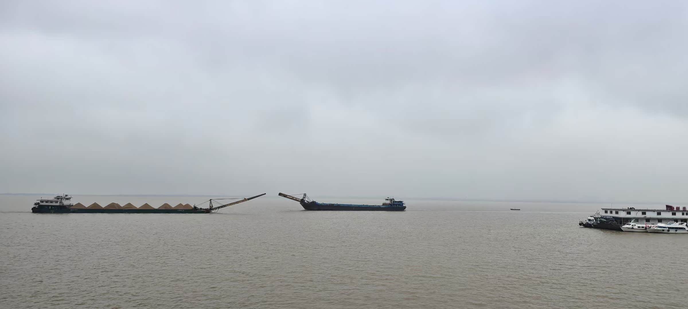 远处的沙船与近处的湖光、天际的云影相映,让这“衔远山,吞长江”的壮阔里,多了几分人间烟火的温情。风里带着湖水的潮气,混着淡淡的泥土气息,许是沙船从湖滩带来的馈赠。