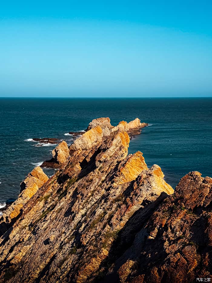 到达驼山乡排石村,眼前展现的是一片典型的海蚀地貌。奇特的岩层结构和壮观的海岸线让全家惊叹不已。