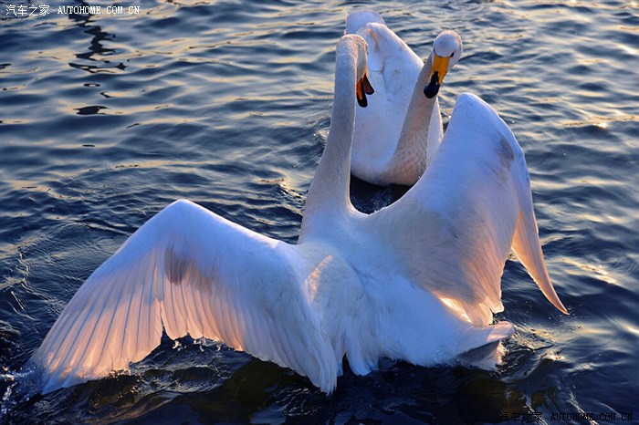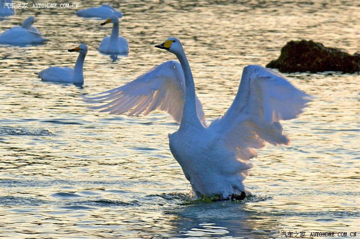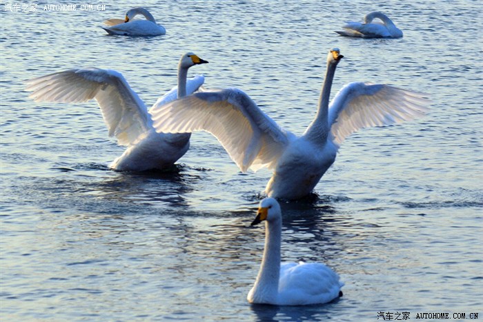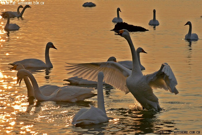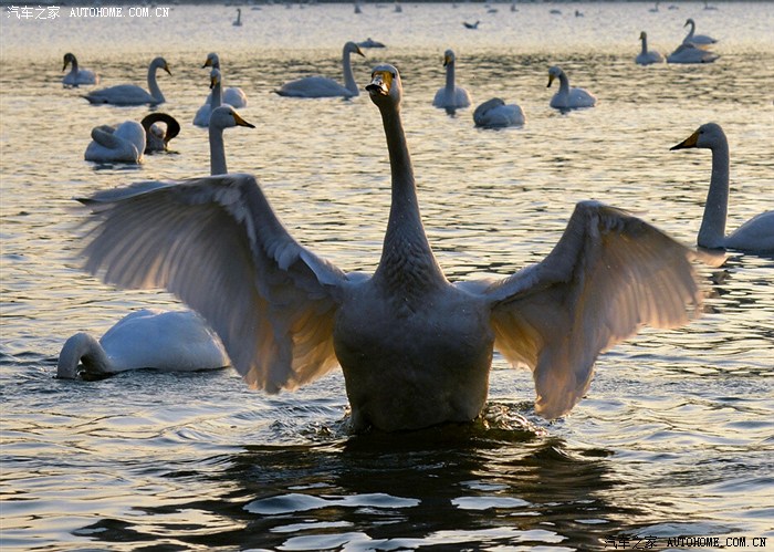 ▼太阳完全出来了,大天鹅们飞来飞去。