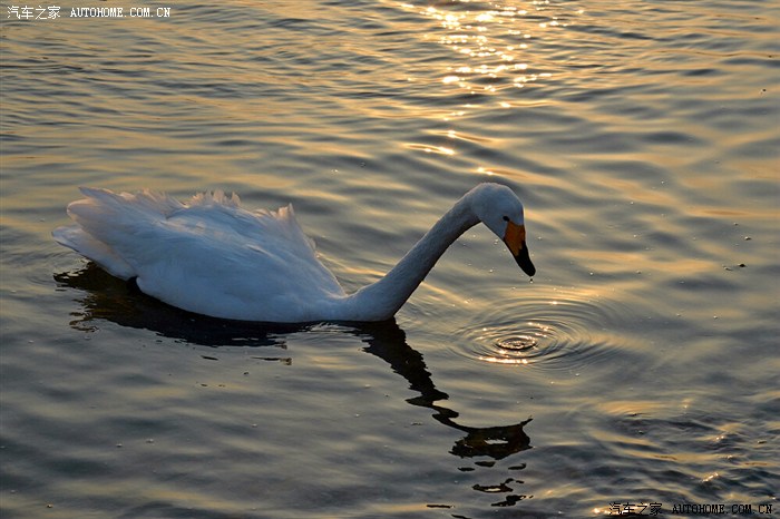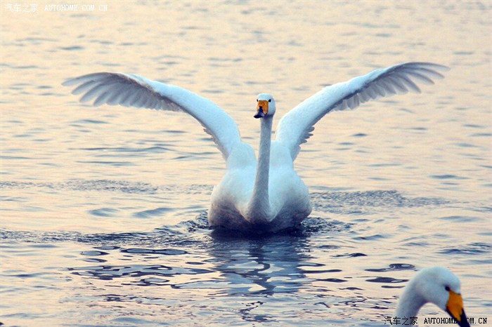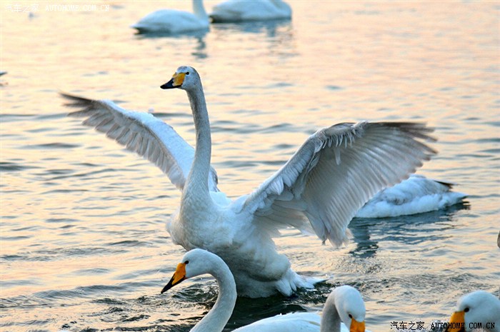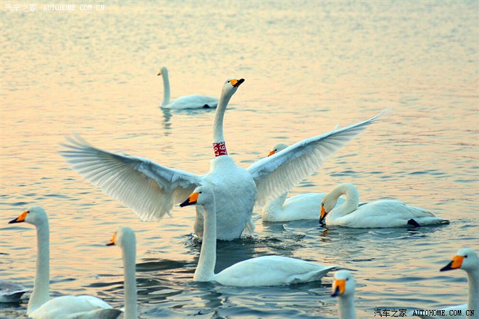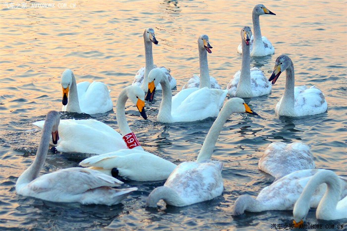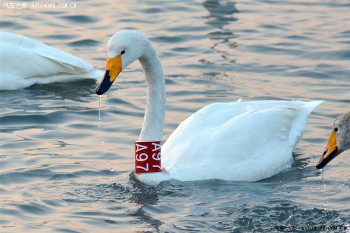 ▼这是天鹅湖里唯一一只带“袖标”的大天鹅。