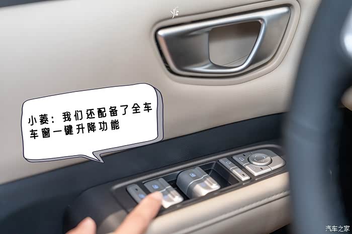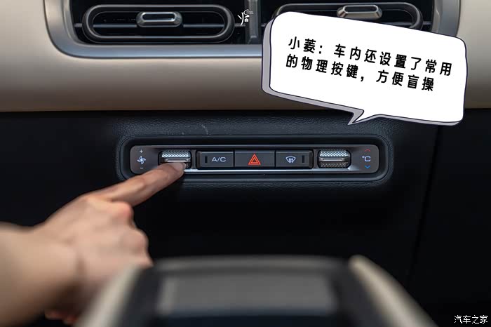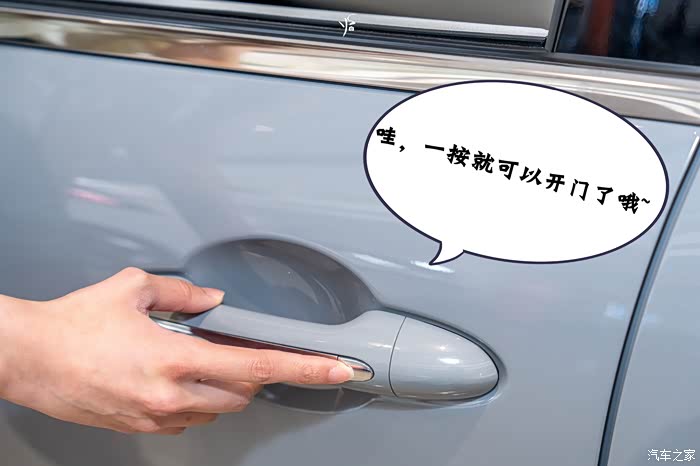 不得不说,五菱缤果SUV的细节还是做得挺好的,PD小姐姐走进车厢里面的时候发现只要揣着车钥匙一按这个按键就可以解锁上车了。