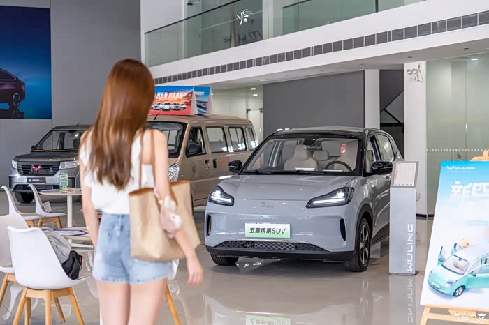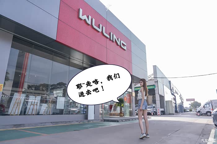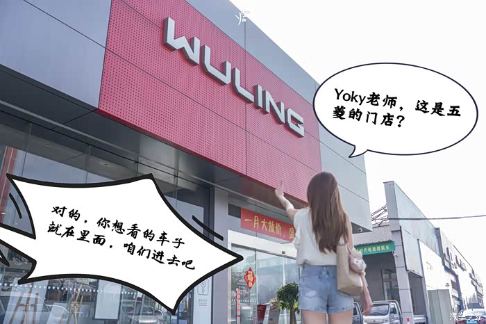 和小姐姐一到门店就看到五菱的招牌,一脸好奇的问我