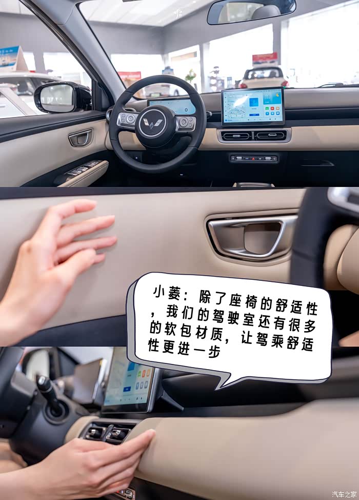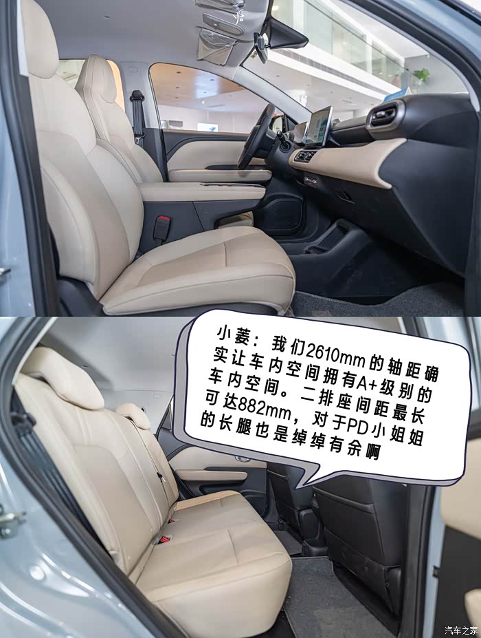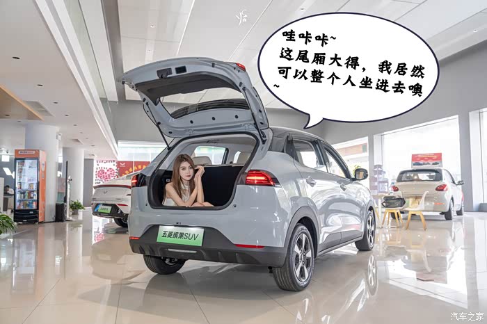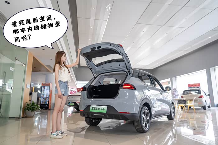 为了了解五菱缤果SUV的空间情况,PD小姐姐已经迫不及待进入车厢里了。