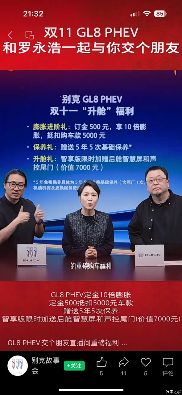 从大多数人关注的地方开始说起!2025款GL8陆尊燃油版26.99万到33.99万;陆尊插混35.99万到41.99万!不过在这里要提醒大家,如果你有国三的燃油乘用车是可以享受国家报废补贴的,如果没有,这个补贴就不纠结了,你可以关注一下你所在地方的商务局,看看有没有地方补贴,注意补贴的一个条件,应该就不需要报废车辆,只是以旧换新,并且买新能源车的补贴是要远高于燃油车的补贴的哦,具体的各地方做各地方的吧,你们自己观望!然后个品牌应该也会有补贴的吧?!更有意思的事,我竟然看见了罗永浩和别克一起进行了直播,说是大家一起交个朋友,双十一买插混有升舱的福利,各种的,搞得我心动不如行动!