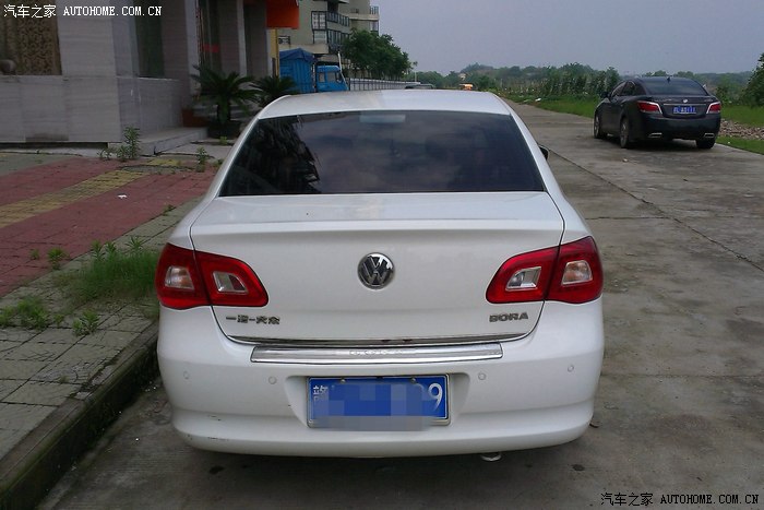 大众车标、一汽大众、BORA几个镀铬标识很亮眼,一点没有要生锈迹的感觉。后备箱盖与保险杠接缝的地方一条银色镀铬亮条,增添了一道风景线。(注:下面那条较宽的是我自己加装的)