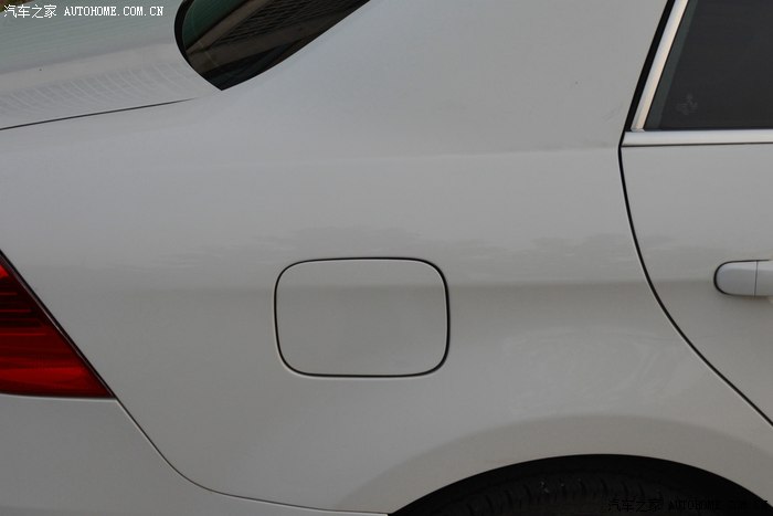 车侧面,虽然整体比较圆润,没有流行车型的线条那长显眼夸张,但从前门起贯穿门把手直到油箱盖的腰线角度,还是使车身呈现前倾冲刺的姿态,增加了动感。车窗上的整圈镀铬亮条也使车子更亮眼。